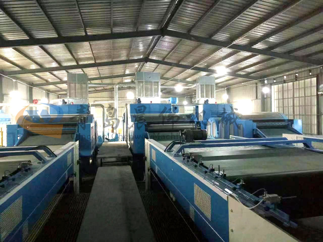 開包機-開松機-振動給棉機-梳理機-鋪網(wǎng)機-烘房-燙光機-成卷切片機