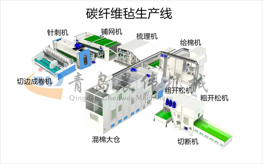 切斷機(jī)-開松機(jī)-振動給棉機(jī)-梳理機(jī)-鋪網(wǎng)機(jī)-針刺機(jī)-切邊成卷機(jī)